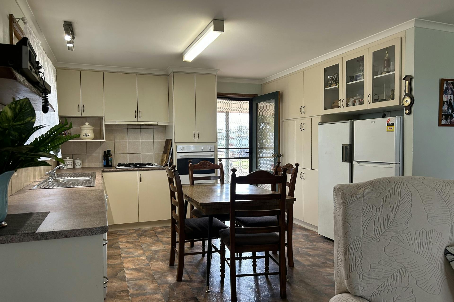 • Open plan kitchen / living area, SF wood heater, evaporative air conditioner.